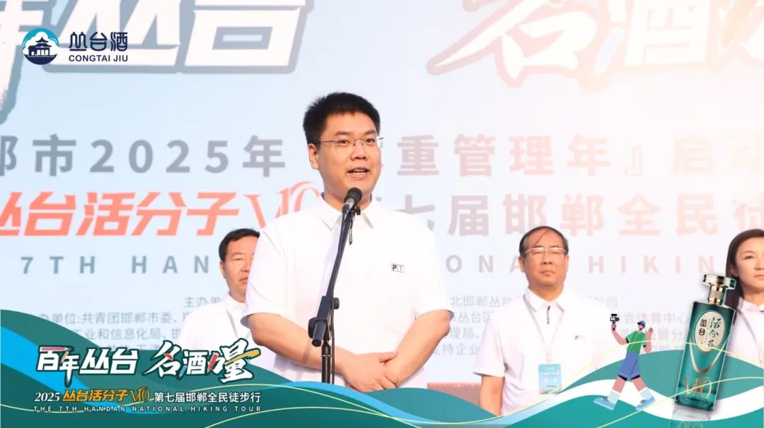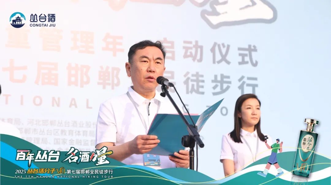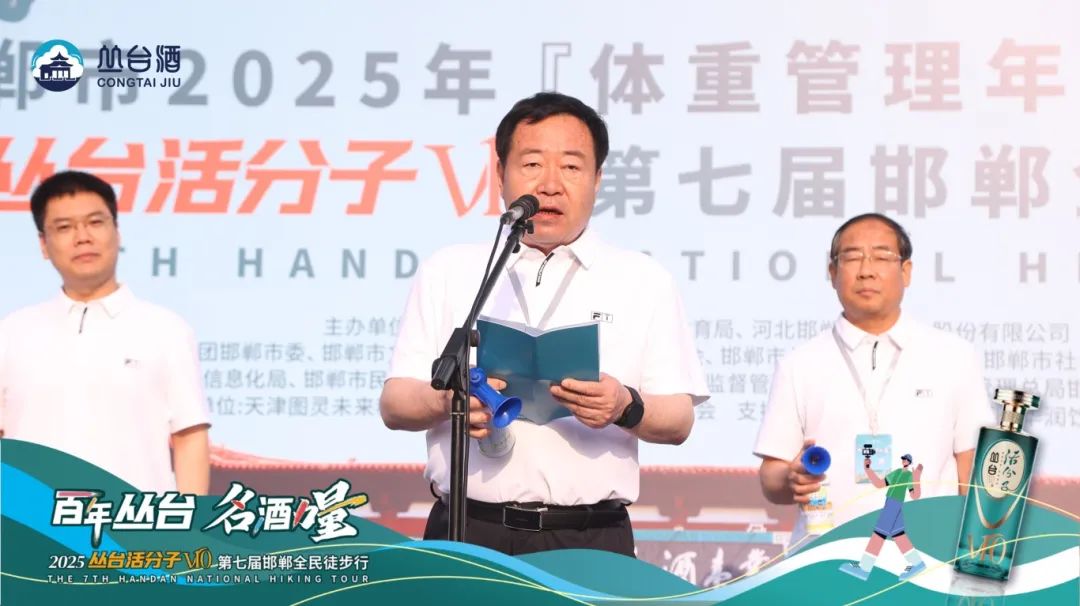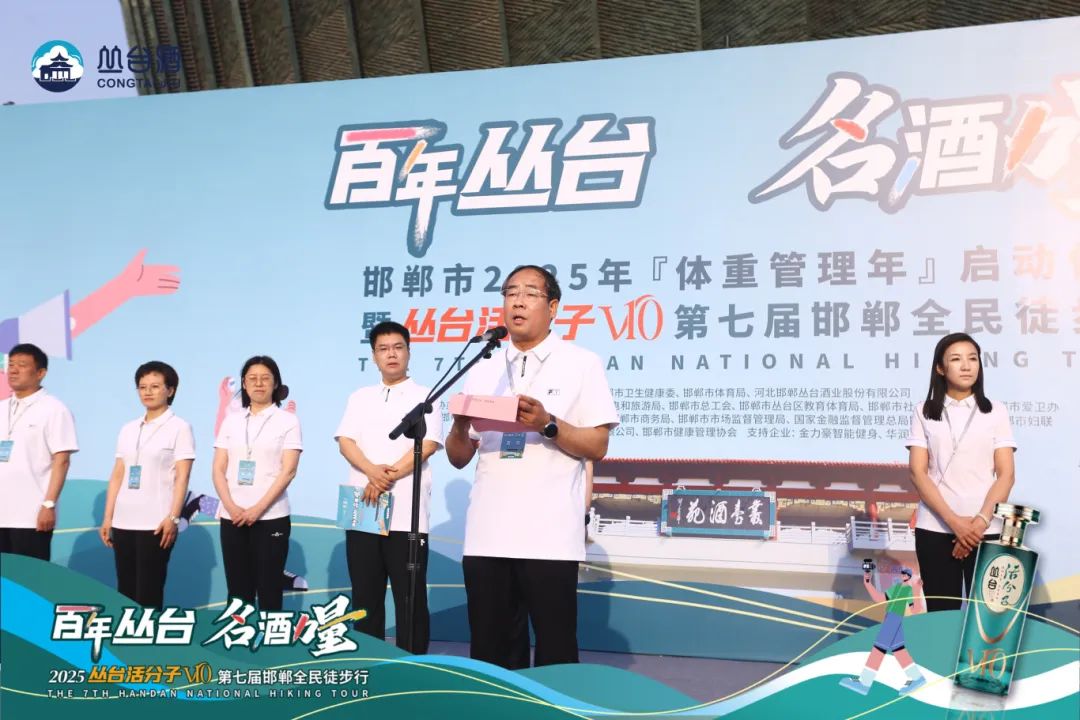 本次活動(dòng)由叢臺(tái)酒業(yè)攜手邯鄲市衛(wèi)生健康委、邯鄲市體育局主辦,由共青團(tuán)邯鄲市委、邯鄲市文化廣電和旅游局、邯鄲市總工會(huì)、邯鄲市叢臺(tái)區(qū)教育體育局、邯鄲市社會(huì)體育中心、邯鄲市愛(ài)衛(wèi)辦邯鄲市工業(yè)和信息化局、邯鄲市民政局、邯鄲市商務(wù)局、邯鄲市市場(chǎng)監(jiān)督管理局、國(guó)家金融監(jiān)督管理總局邯鄲監(jiān)管分局、邯鄲市婦聯(lián)、肥鄉(xiāng)區(qū)政府協(xié)辦,并得到怡寶礦泉水等企業(yè)鼎力支持。出席活動(dòng)領(lǐng)導(dǎo)有:邯鄲市人大常委副主任李海平,邯鄲市衛(wèi)健委黨組書(shū)記李之杰,共青團(tuán)邯鄲市委書(shū)記徐幗一,邯鄲市婦聯(lián)黨組書(shū)記、主席陳國(guó)慶,邯鄲市文化廣電和旅游局副局長(zhǎng)胡利娜,邯鄲市體育局黨組成員、副局長(zhǎng)韓林學(xué),邯鄲市總工會(huì)黨組成員、副主席周志理,邯鄲市民政局黨組副書(shū)記、副局長(zhǎng)、三級(jí)調(diào)研員卜炳獻(xiàn),邯鄲市工業(yè)和信息化局副局長(zhǎng)趙鋒,邯鄲市商務(wù)局副局長(zhǎng)薛學(xué)林,邯鄲市教育局副局長(zhǎng)高嘉藝,邯鄲市體育局三級(jí)調(diào)研員殷衛(wèi)兵,國(guó)家金融監(jiān)督管理總局邯鄲監(jiān)管分局三級(jí)調(diào)研員趙代政,邯鄲市商務(wù)局四級(jí)調(diào)研員劉永峰,邯鄲市愛(ài)衛(wèi)辦副主任王軍磊,邯鄲市肥鄉(xiāng)區(qū)人民政府副區(qū)長(zhǎng)韓峰,叢臺(tái)酒業(yè)集團(tuán)總經(jīng)理李鵬亮?;顒?dòng)以“百年叢臺(tái),名酒力量”為核心主題,熱烈響應(yīng)邯鄲市“體重管理年”健康倡議,同時(shí)獻(xiàn)禮叢臺(tái)酒業(yè)建廠80周年,以徒步為紐帶,倡導(dǎo)全民科學(xué)健身與健康生活方式,為建設(shè)活力邯鄲、健康邯鄲注入新動(dòng)能。