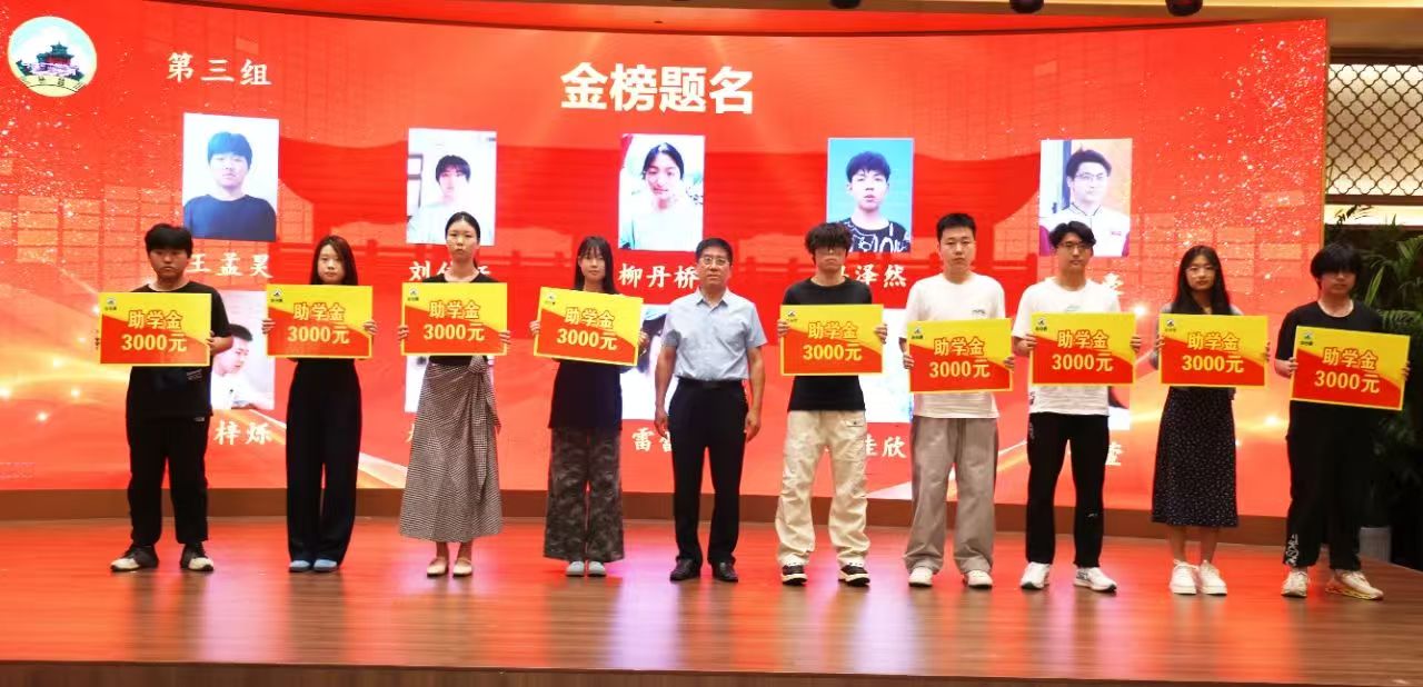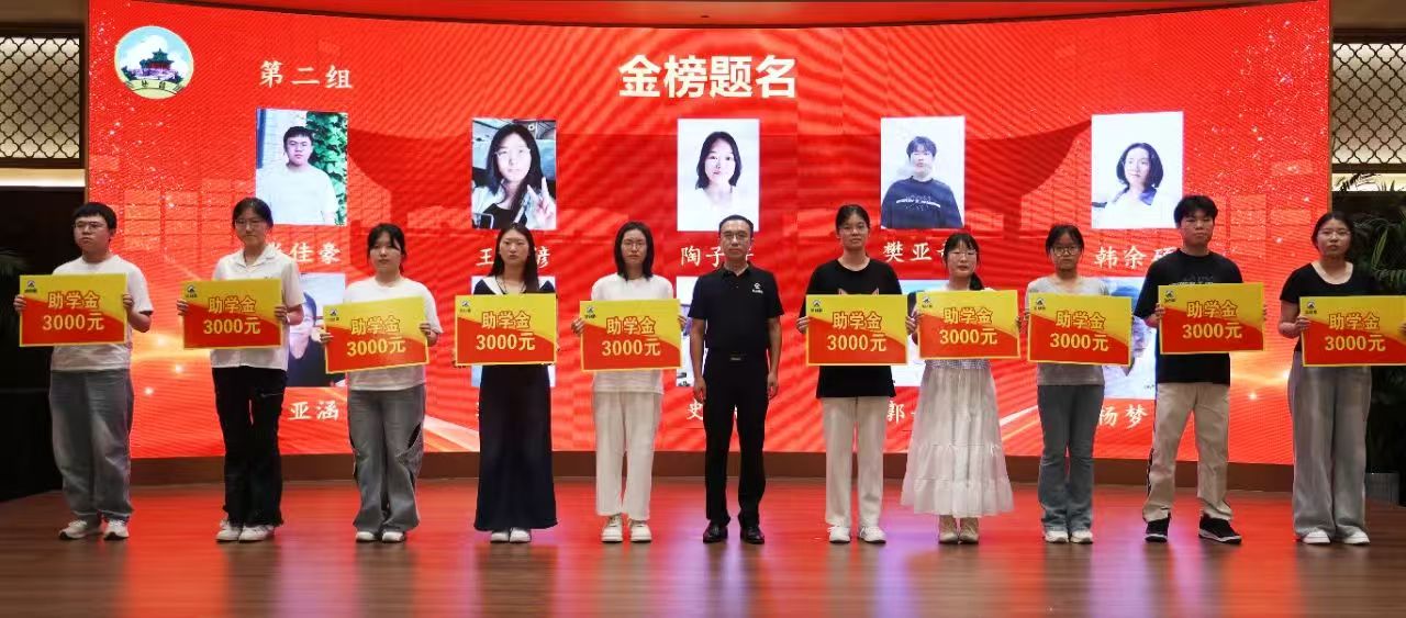 ▲公司副總經(jīng)理王星杰為考取本科生的優(yōu)秀學(xué)子頒發(fā)助學(xué)金:張佳豪、王梓諺、陶子軒、樊亞奇、韓余碩、卜亞涵、郭柯然、史怡、郭士群、楊夢(mèng)雪