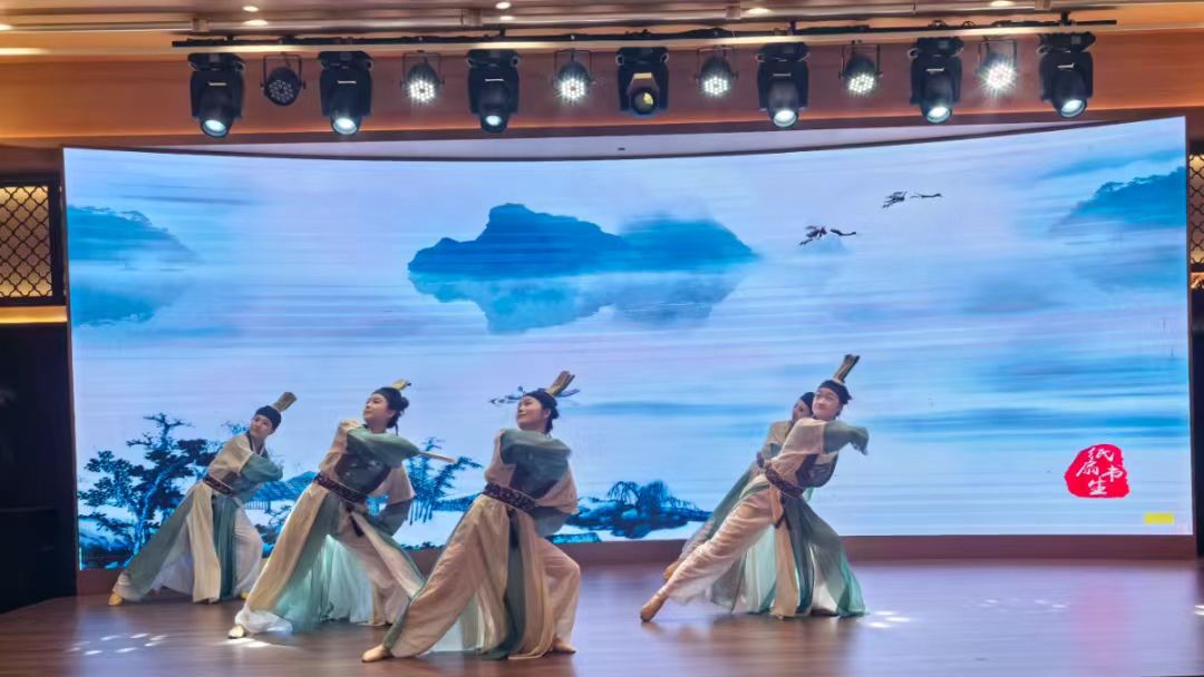伴隨著舞蹈演員們的書(shū)簡(jiǎn)舞:一卷竹簡(jiǎn),承載千年酒脈脈;一舞翩躚,演繹青春風(fēng)華。此刻,我們仿佛穿越時(shí)空,共赴一場(chǎng)‘書(shū)與舞’的對(duì)話——看,青年學(xué)子們手持書(shū)簡(jiǎn),以身為筆,以舞為墨,在方寸之間書(shū)寫(xiě)青春的詩(shī)行……