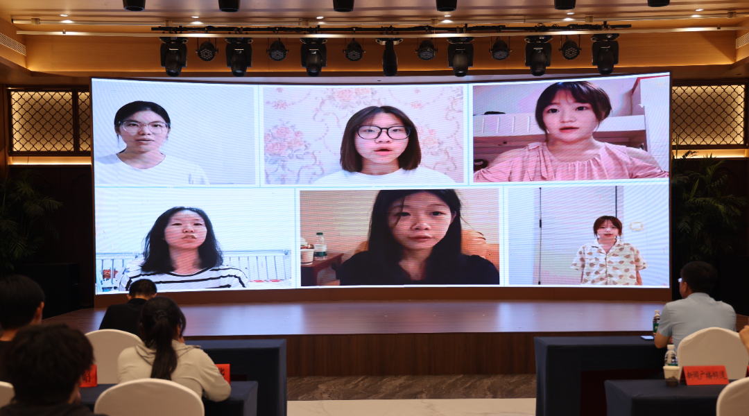 ▲播放受助學(xué)子感恩視頻